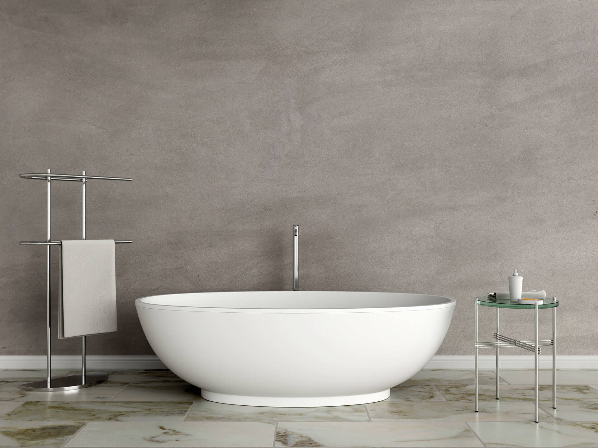 Microcement ger ett unikt utseende och kan appliceras direkt på de flesta ytor, t.ex direkt på ett befintligt kakel eller golv.